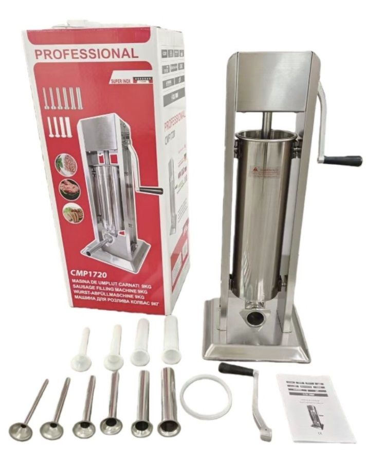 Kvalitná nerezová stojatá plnička Campion CMP1720 na klobásy, jaternice, salámy, párkov a iných mäsových výrobkov.