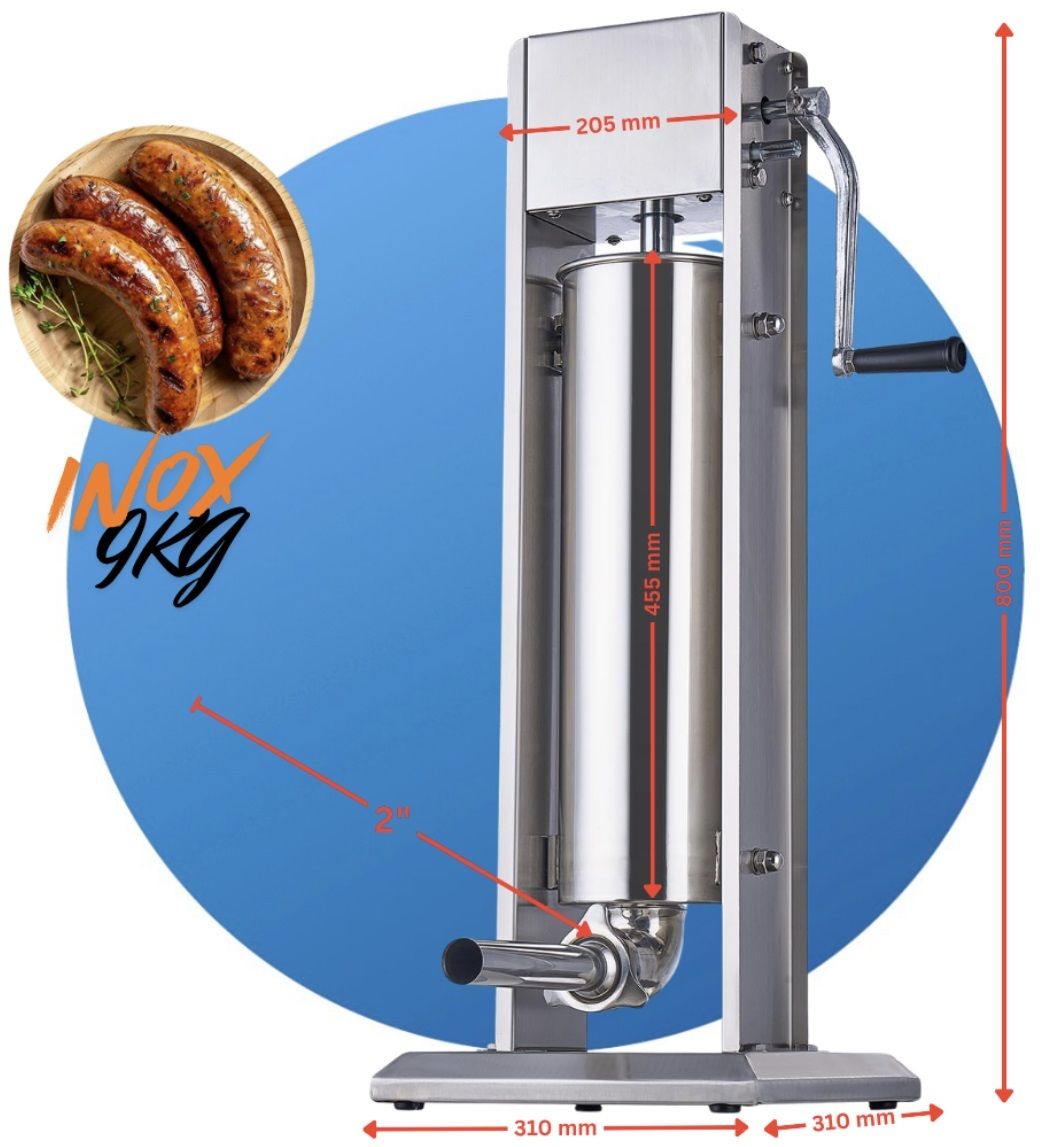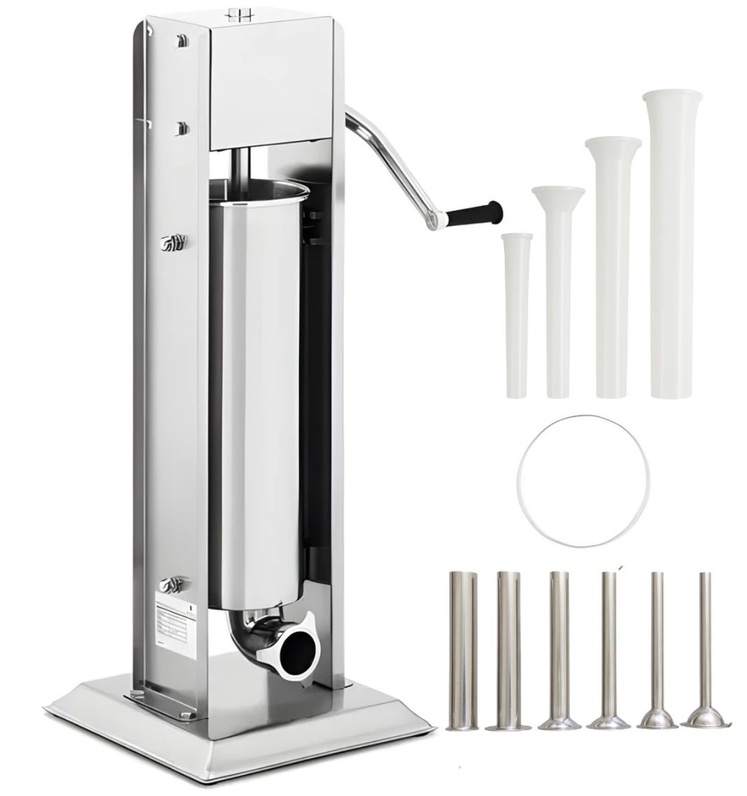 Profesionálna 9kg nerezová plnička na klobásy 2 rýchlosti 10 plniacich trubíc